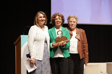 Entrega del premio en Salamanca a miembros de la asociación Enseñantes con Gitanos (4.6.2025) durante el IX encuentro de las Escuelas de 2ª Oportunidad